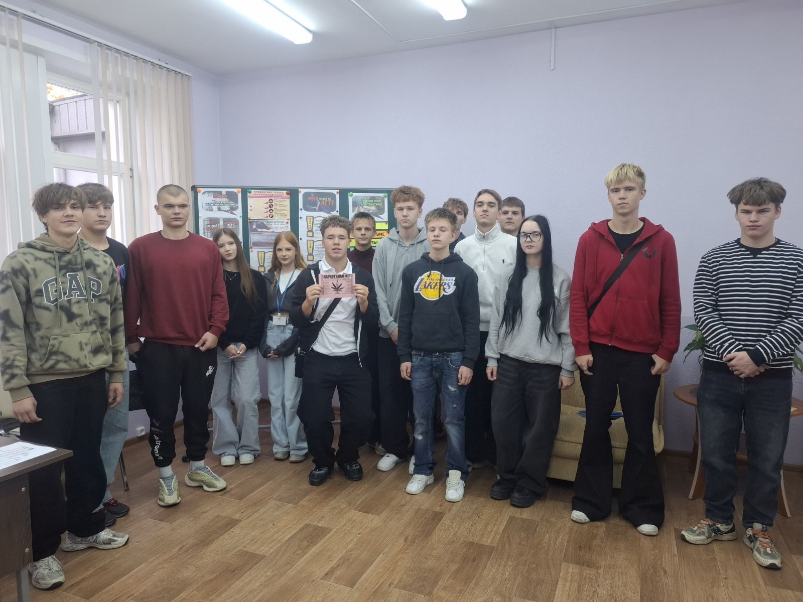 Ребятам была приведена статистика по несовершеннолетним, которые оказались на скамье подсудимых за распространение  наркотиков. Также с учащимися были рассмотрены статьи административного и уголовного кодекса. Ребятам еще раз напомнили про права и обязанности, как необходимо вести себя в общественных местах, социальных сетях.