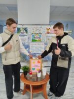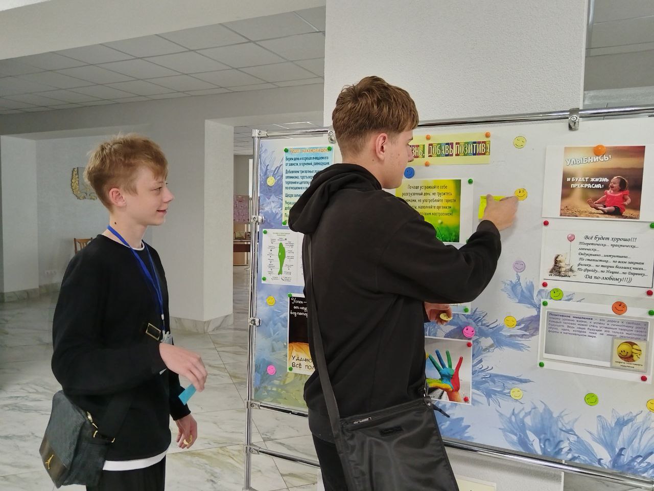 Педагог-психолог вместе с учащимися встречали в фойе учащихся и преподавателей, предлагали выбрать с каким настроением пришли они в колледж. Затем яркие смайлики расположились на «Поляну настроения».