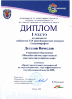 В номинации «Проект практических мероприятий по энергосбережению» дипломом I степени – Денисов Вячеслав.