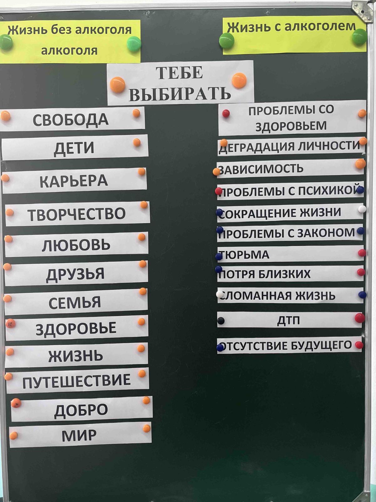 В ходе мероприятия ребята узнали о влиянии алкоголя на организм человека, на семейное благополучие и на общее благосостояние. Ребята наглядно представили, как будут выглядеть органы человека при употреблении алкоголя и предложили свою альтернативу алкоголю через занятия спортом и другими полезными увлечениями.