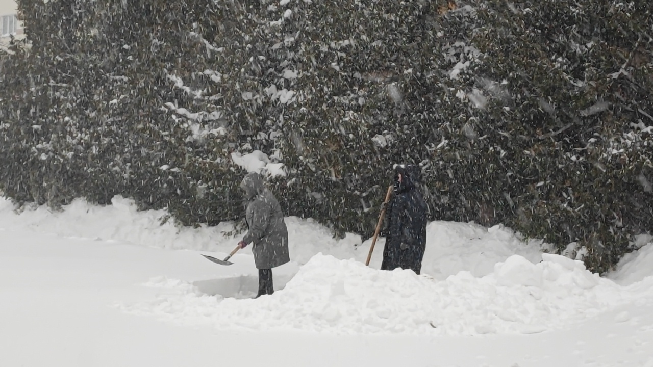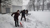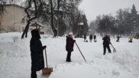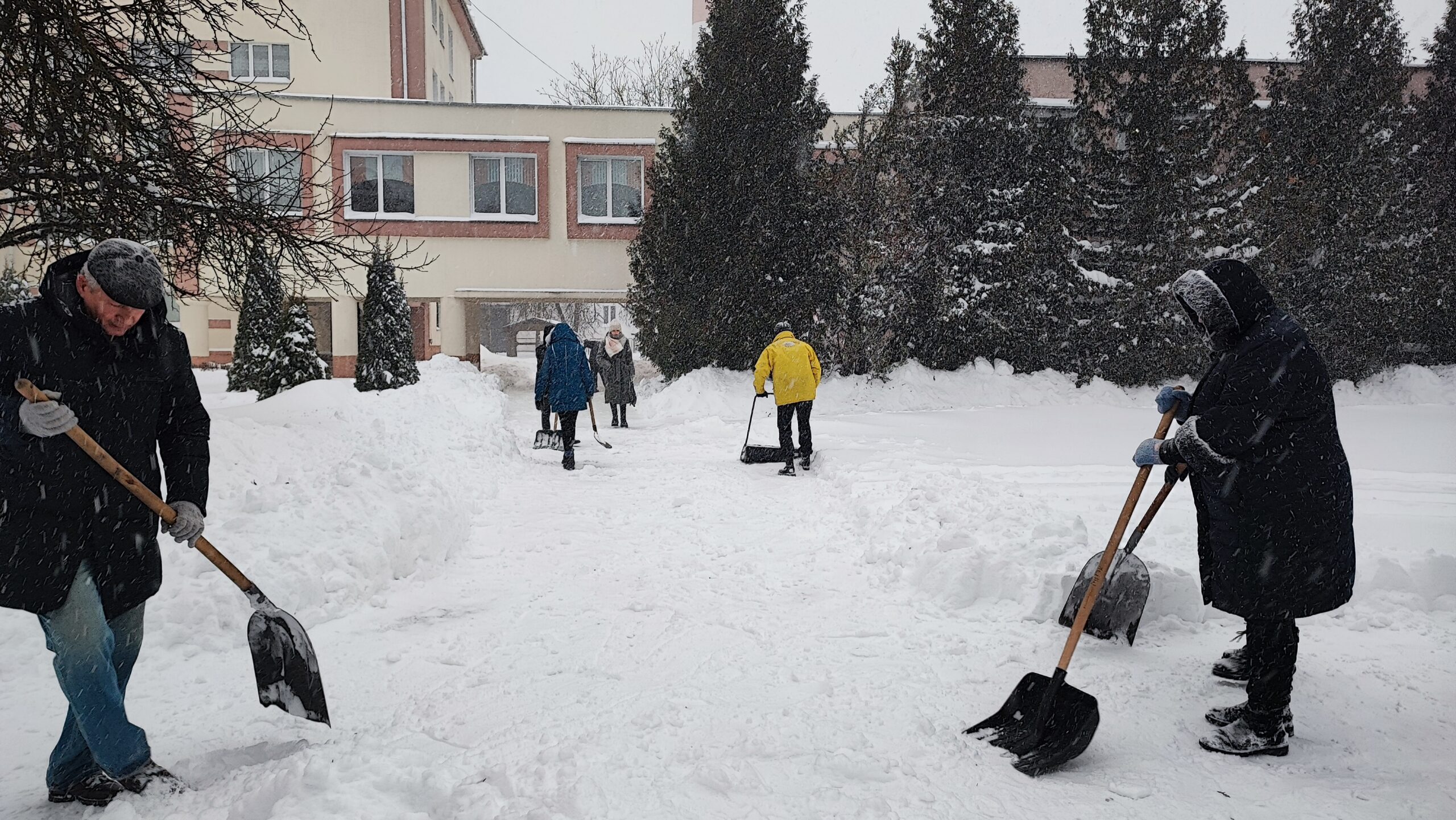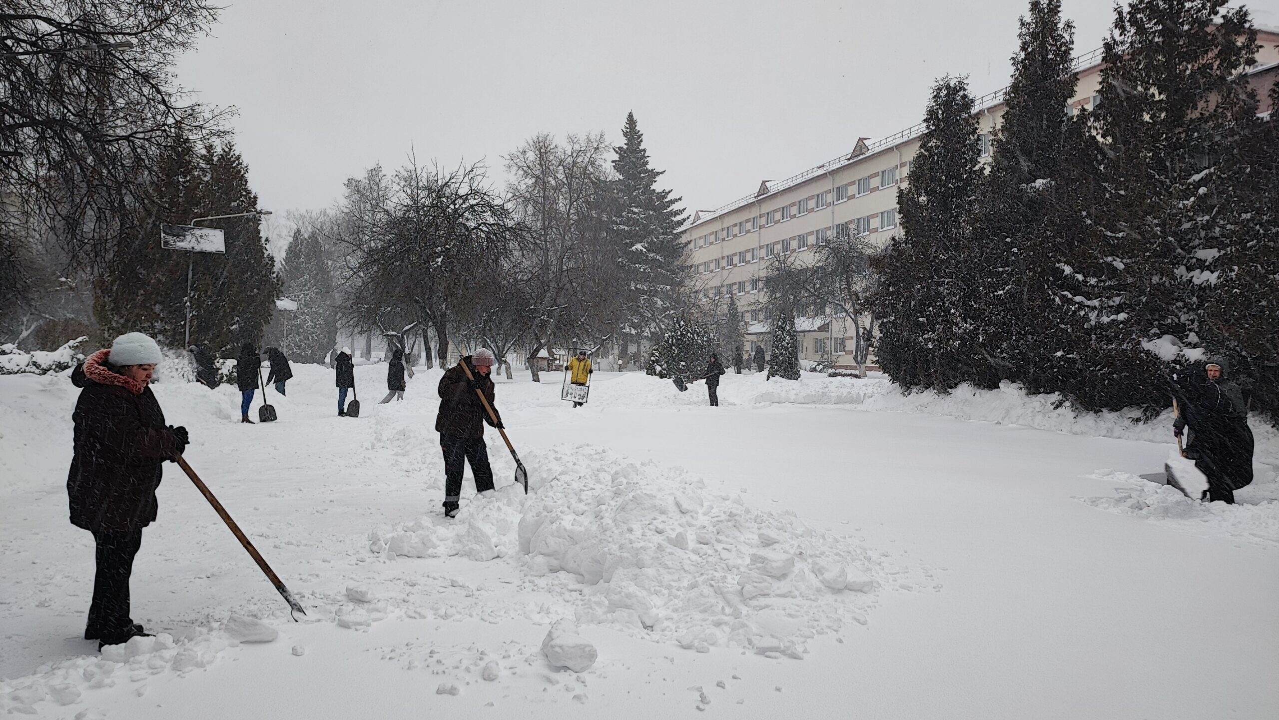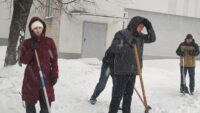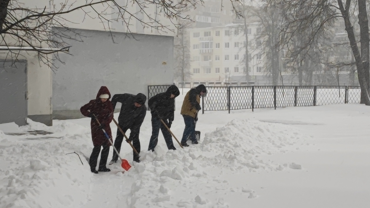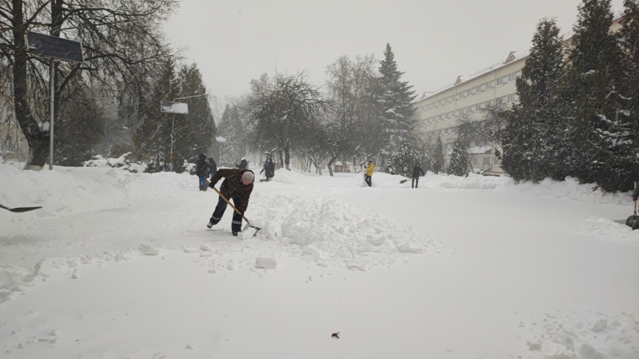 С самого раннего утра команда нашего колледжа вооружилась лопатами и взялась за работу по уборке снега.