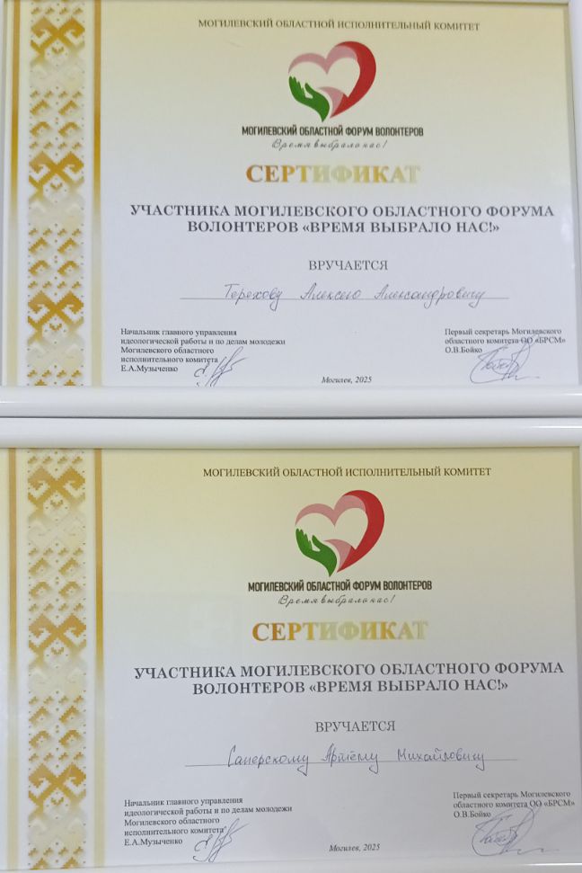 25 ноября 2025 г. представители волонтерского отряда «Доброе Сердце» колледжа приняли участие в Могилевском областном форуме волонтеров «Время выбрало нас!», организованном ОО «БРСМ» на базе «Белорусско-Российского университета».