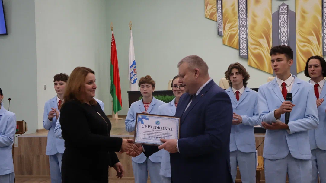 В заключение Александр Михайлович Кравченко подчеркнул, что для профсоюза Белэнерготопгаз работа с молодежью является одним из ключевых стратегических направлений. В своем заявлении к учащимся он отметил: «То, что мы сегодня увидели, вселяет уверенность, что в колледже созданы все условия для подготовки высококлассных специалистов в сфере энергетики. И вы, нынешнее поколение, имеете беспрецедентную возможность полностью реализовать свои профессиональные навыки, полученные в колледже, именно на предприятиях Беларуси, тем самым повышая промышленный потенциал нашей страны, что соответствует интересам общества и государства и способствует формированию чувства патриотизма и любви к Родине». Особой частью программы стало торжественное вручение сертификата колледжу на 5000 тысяч рублей. «Этот документ — свидетельство нашей уверенности в высоком качестве подготовки специалистов и подтверждение намерений развивать сотрудничество», — отметил в Александр Михайлович.
