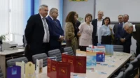 Делегация во главе с председателем Республиканского комитета профсоюзов Александром Михайловичам Кравченко начала визит со знакомства с материально-технической базой колледжа. Директор колледжа Виктор Викторович Буряко лично сопровождал гостей, показывая современные учебные классы, лаборатории, производственные мастерские, общежитие.