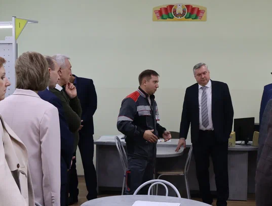 Особый интерес у членов президиума вызвали специализированные мастерские, оснащенные действующими стендами и оборудованием, являющимися аналогами оборудования предприятий «Белэнерго». Директор колледжа подробно рассказал о том, как будущие специалисты на практике отрабатывают необходимые навыки.
