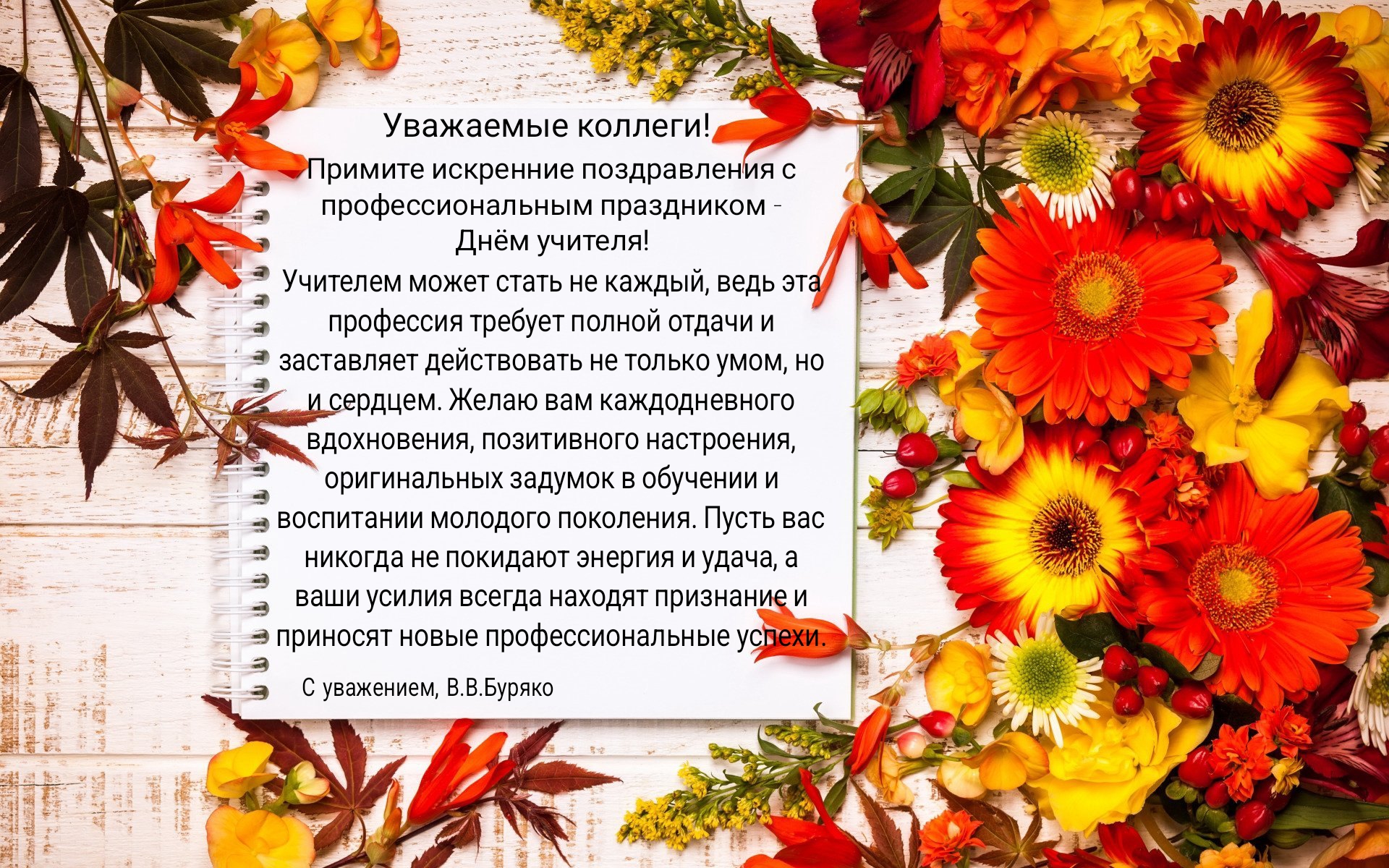 Поздравление директора УО «Могилевский государственный электротеxнический колледж» Виктора Викторовича Буряко с Днём учителя.
